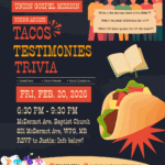 SAVE THE DATE!! Some exciting news for the New Year… UGM is hosting a Taco, Testimonies, & Trivia Night for Young Adults, this February! Please RSVP to Justin at 204-943-9904, ext. 222, or email Justin.lange@gospelmission.ca. Come on your own, bring a friend, or even your Young Adults group. We can’t wait to see y , ...