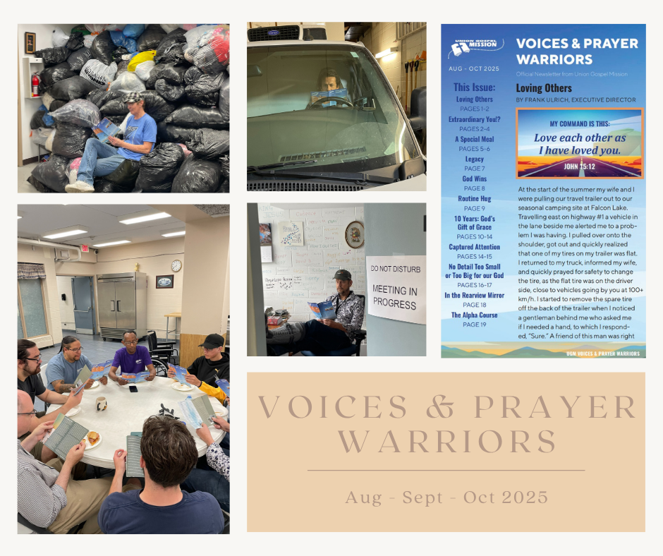 Check your mailbox or go online to www.gospelmission.ca/media/newsletter/ to read it for yourself! If you want to sign up for our newsletter, please call Justin at 204-943-9904, ext. 222.
