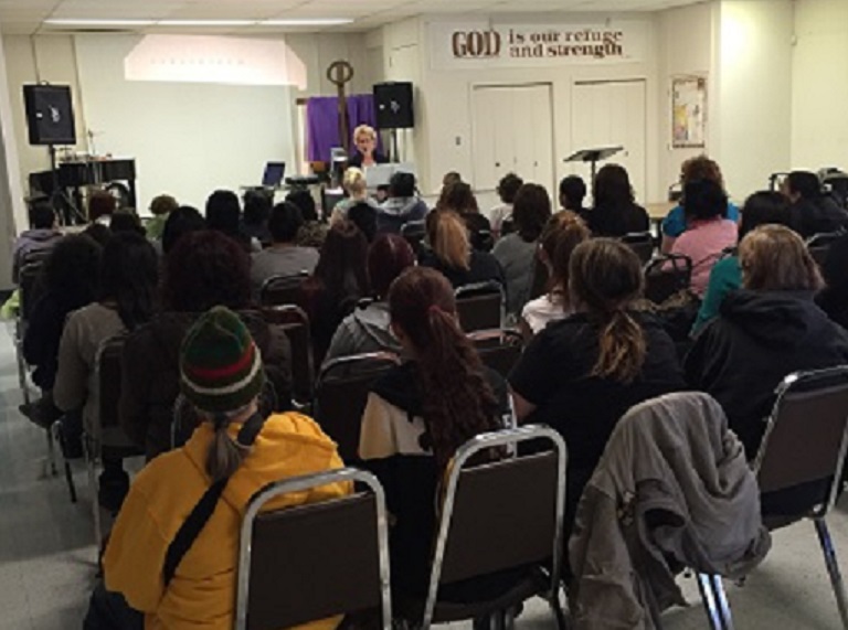Wednesday is the ‘big day’ there – as many as 70 ladies will come by the building for a program that starts in the morning and ends in the early afternoon.  Coffee is served, fellowship is enjoyed, and is followed by a time of Worship, Bible study and prayer.  Just before noon, a chapel service takes place and then a hot lunch, prepared and served by volunteers is eagerly gobbled up by those who have taken part in the morning activities.  A prayer table is also set up for those ladies who desire to be prayed for and who may want to talk further about anything that they have heard throughout the morning.